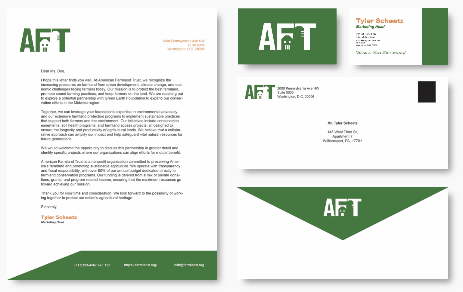 The American Farmland Trust is a non-profit organization that raises money and awareness for US farms and farmers. The project was based around creating an impact report and stationery, along with a rebranded logo. The website was created in Adobe XD, with supplementary graphics from Adobe Illustrator. The logo was created in Illustrator as well, with the stationery package being made in Adobe InDesign.